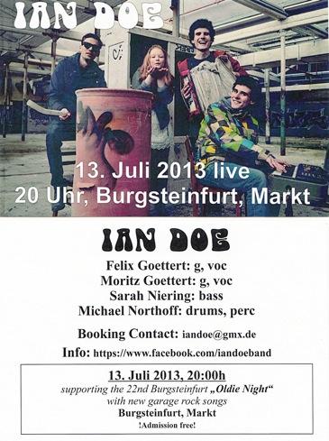 Die Band "Ian Doe" mit Mitgliedern des Jugendorchesters Borghorst spielt in diesem Jahr auf der Oldie Night in Burgsteinfurt am 13.07.2013. Für weitere Infos klickt bitte auf das Bild .....