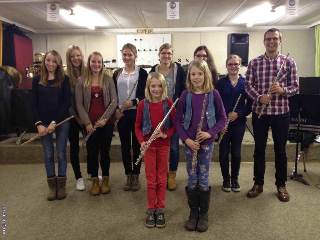 Diese Flötenschülerinnen des Jugendorchesters Borghorst gaben am Montagabend im weihnachtlich geschmückten Probenraum ein kleines Konzert. In familiärer Atmosphäre trugen sie traditionelle, barocke und romantische Kompositionen vor.