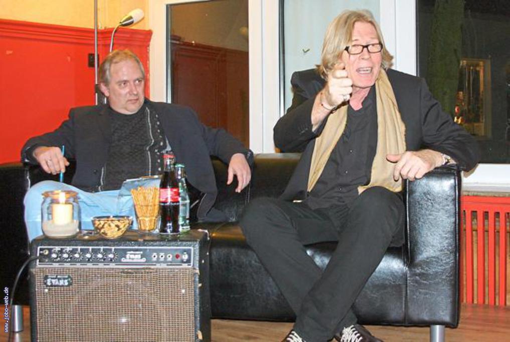 Der wandlungsfähige und wandlungsbereite Musiker stammt aus Burgsteinfurt und plauderte mit Dr. Peter Krevert auf einer kleinen Bühne umringt von E-Bass, Verstärker und Bongos locker vom schwarzen Ledersofa. Nach mehr oder min-der verrückter Jugend und ebensolche Schulzeit – zu-letzt auf der Realschule in Borghorst – hat es ihn mittlerweile nach Berlin-Charlottenburg verschlagen „wo ich auch nicht mehr weg will“, wie er frank und frei bekennt.