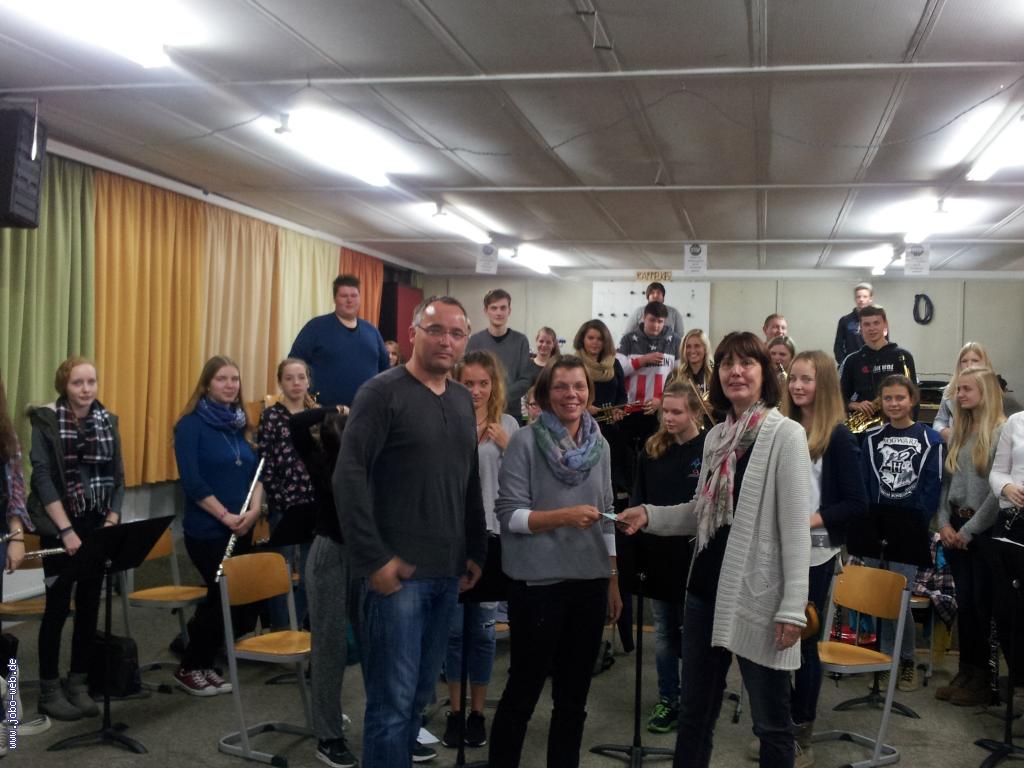 Während der Probe des „Studioorchesters“ am Dienstag Abend (28.10.) überreichte Anne Kleine–Berkenbusch für die Firma „Bäumer Heizung und Sanitär“ einen Scheck über 300 Euro an das Jugendorchester Borghorst. Mit großer Freude nahmen die erste Vorsitzende Ingeborg Northoff und Orchesterleiter Thomas Blanke den Scheck im Kreis der jungen Musiker entgegen. Diese hatten nämlich mit den Musikern des Vororchester „Great Job“ nicht nur prima Musik bei der Gewerbeschau der Firmen an der Harkortstraße und Siemensstraße am 31. August abgeliefert, sondern auch jede Menge Kuchen für die Kuchentheke gebacken. Der Erlös daraus kommt jetzt dem Jugendorchester Borghorst für zukünftige Aktivitäten zugute.