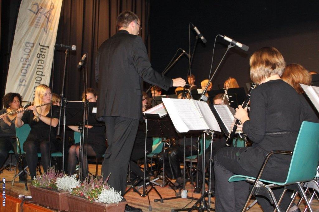 Nach einer Umbaupause war es an dem belgischen Orchester, das Publikum von ihrem Können zu überzeugen. Die in Finnland geborene Orchesterleiterin Anne Piirainen hat eine Zeit lang in Steinfurt gelebt. In bestem Deutsch stellte sie ihre Schützlinge vor. Und schnell war klar, dass sich das Jeugdorkest Hemiksem, kurz "JOH!", nicht hinter dem Borghorster Orchester verstecken muss. Mit Titeln wie "Moulin Rouge", "New Moon" und "Children of the world" zeigten die jungen Musiker, was sie drauf haben.