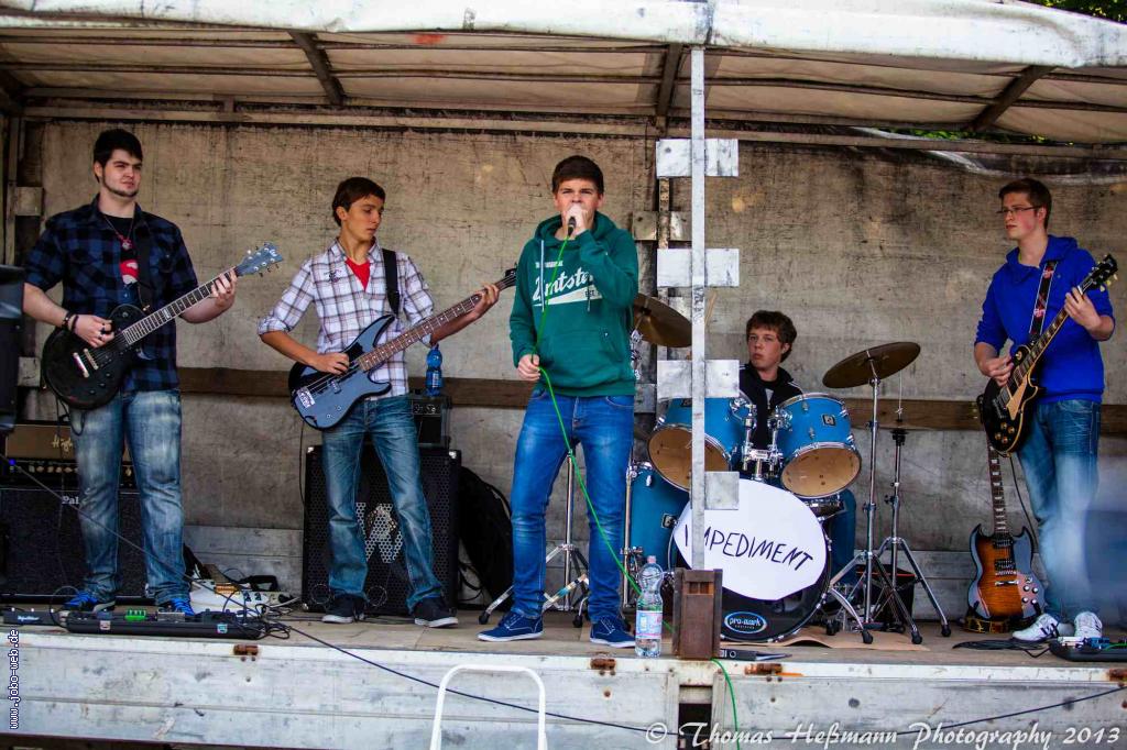 Um schon mal der Stimmung gut einzuheizen begann die Band mit Van Halens Hit „Ain´t talkin’ ’bout Love“. Mit einer ausgewogenen Mischung aus Songs zum mitsingen, unter anderem auch „You give love a bad name“, und einigen Balladen wie „Knocking on Heaven’s“ wurde das Publikum gut unterhalten. Nach der Zugabe „Nothing else Matters“ hat „Impediment“ dann ihren Auftritt langsam ausklingen lassen, doch dafür war der Beifall nur umso größer.