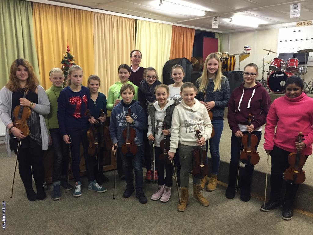 Dass im Jugendorchester Borghorst der Unterricht für Streichinstrumente, siehe Violine und Cello, seit vielen Jahren fester Bestandteil des Angebotes ist, ist vielleicht nicht so bekannt. Erwartet man doch eher die modernen Musikrichtungen. In den verschieden Orchesterstufen sind die Streicher jedoch fest etabliert. Mit dem Streichelzoo bietet das Jugendorchester Borghorst den jungen Musikern eine weitere Möglichkeit mit ihren Instrumenten Erfahrung im Ensemblespiel zu bekommen. Welche Leistungen im Einzelnen die Schülerinnen und Schüler auf der Violine vorzuweisen haben, präsentierten einige von ihnen am vergangenen Freitagabend beim Weihnachtsvorspiel. Mit Ihrem Lehrer Matthias Reuland trugen sie viele bekannte Weihnachtslieder und ausgewählte Sätze der klassischen Literatur vor, u.a. von Telemann, Vivaldi, Mozart oder Schubert.