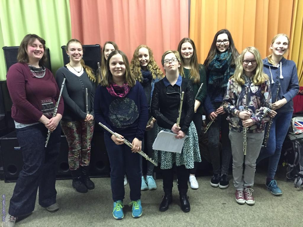 Zum Abschied der Flötistin Frederike Hambach veranstalteten die Querflötenschülerinnen des Jugendorchesters Borghorst ein Konzert. Frederike Hambach, die aus beruflichen Gründen nach Berlin zieht, wurde von ihren Schülerinnen Hedda Müller, Marlen Ratert, Josephine Winkelhaus-Elsing, Maja Dornbusch, Celine Bröker, Marlene Drunkemühle, Theresa Heunemann, Chiara Möllenbeck und Hannah Spille mit guten Leistungen, Freude am Spiel und reichlich schokoladigen Präsenten verabschiedet. Die Arbeit mit ihren Schülerinnen hat der Flötistin viel Freude gemacht und auch diese lassen ihre Lehrerin nur ungern ziehen.