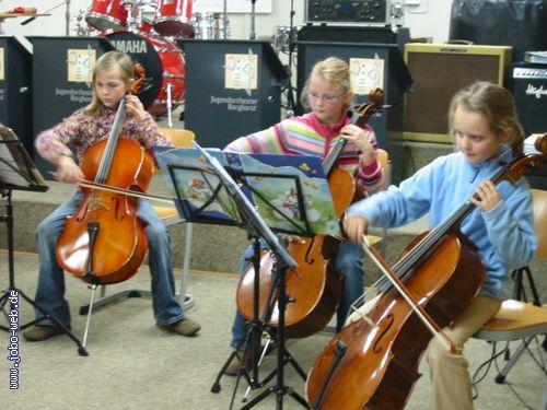 Einfache Streicherliteratur, kleine Stücke, sowie das Unterrichtswerk "Essential Elements for Strings" bilden hier den Unterrichtsschwerpunkt.